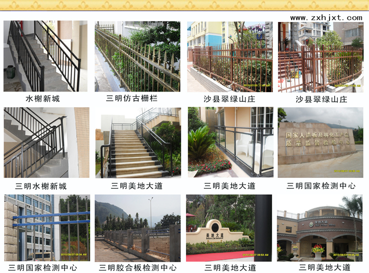 | 西安秦嶺山水 | 深圳華來利實業圣莫利斯 | 廣東梅州華僑城 | 中鐵一局深圳地鐵五號線的鐵路護欄 | 東莞長安第二人民法院宿舍樓的樓梯護欄 |